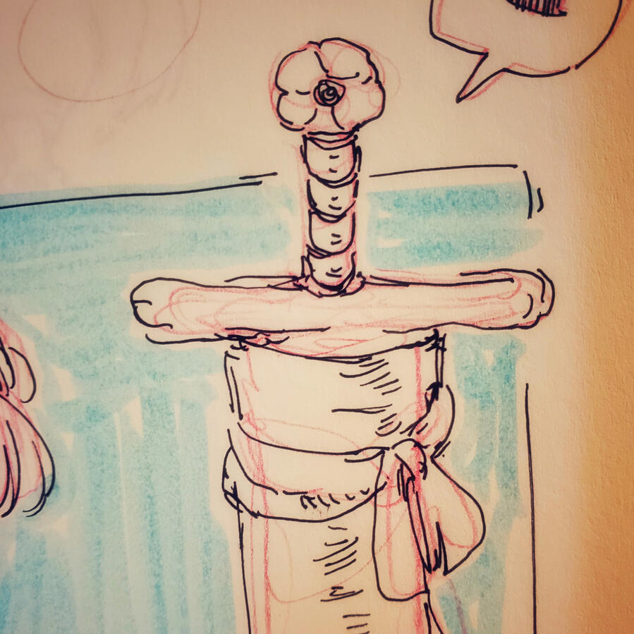 A talking sword Alexis found within the walls of his home. He's unsure if its ability to speak is either a product of longing for companionship or true magic.